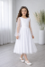 Idealna na Pierwszą Komunię Świętą, a także na przebranie po niej, ta sukienka w kolorze białym łączy w sobie elegancję, komfort i subtelny urok, stając się niezastąpionym wyborem na każdą wyjątkową okazję.
