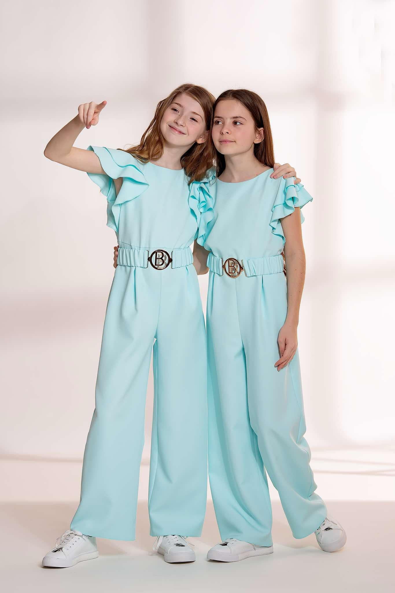 Kombinezon dziewczęcy miętowy z elastycznym paskiem – idealny na specjalne okazje