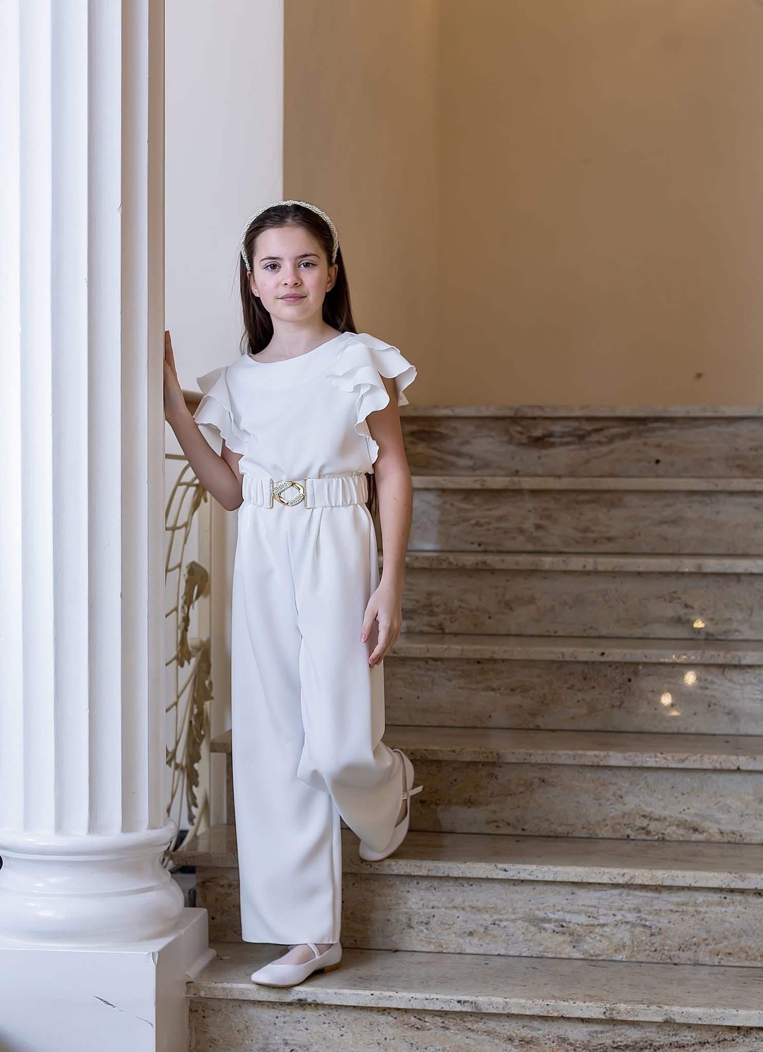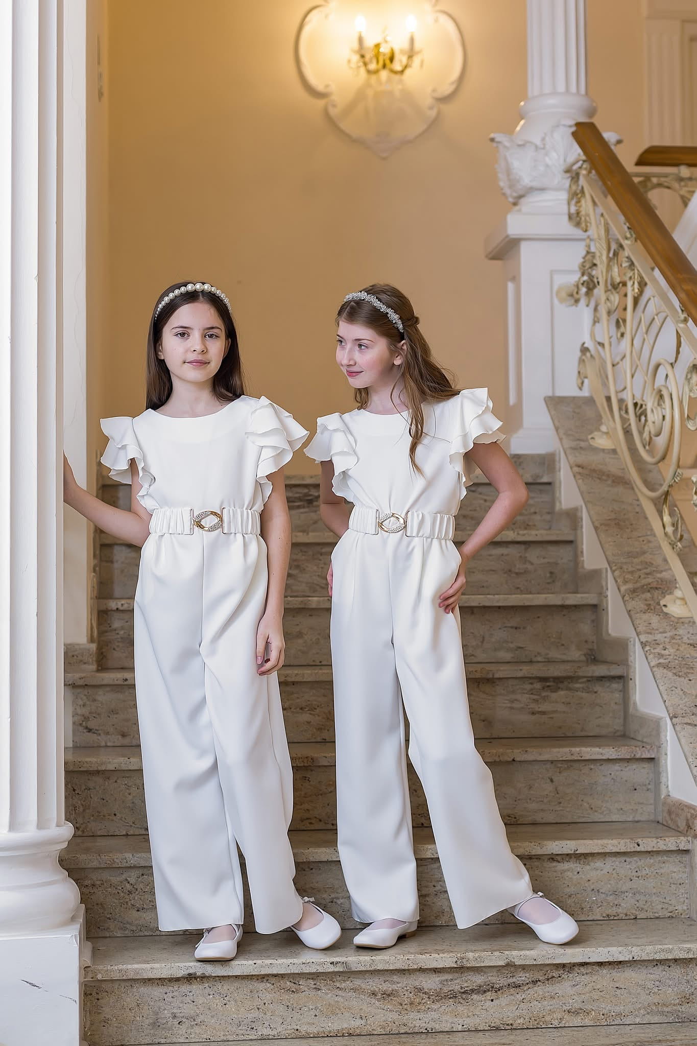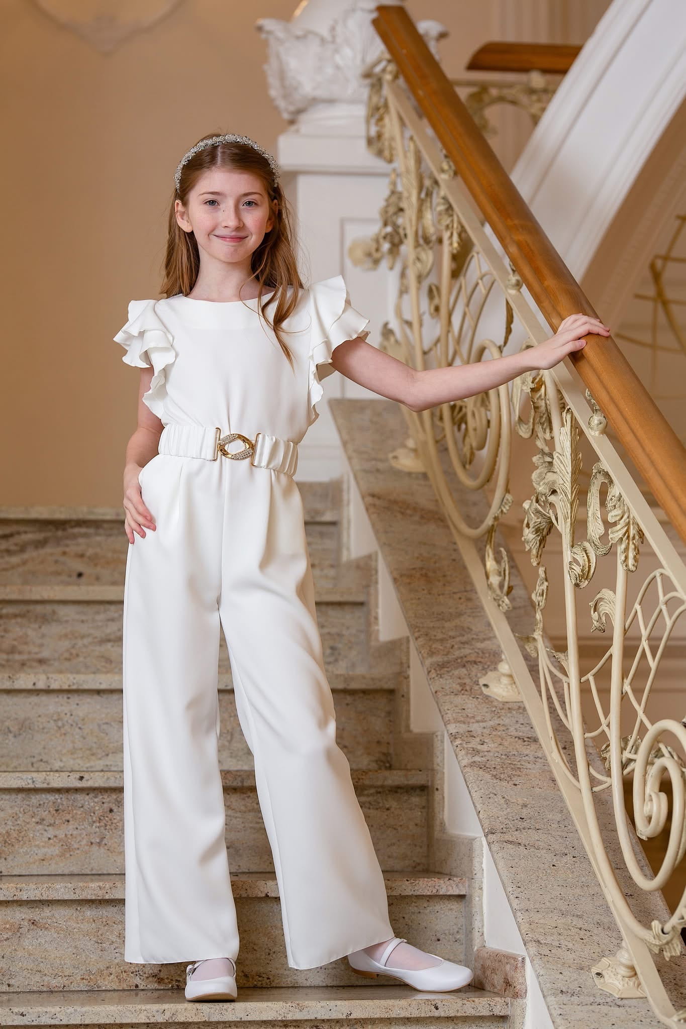Kombinezon komunijny wizytowy z paskiem - Ecru