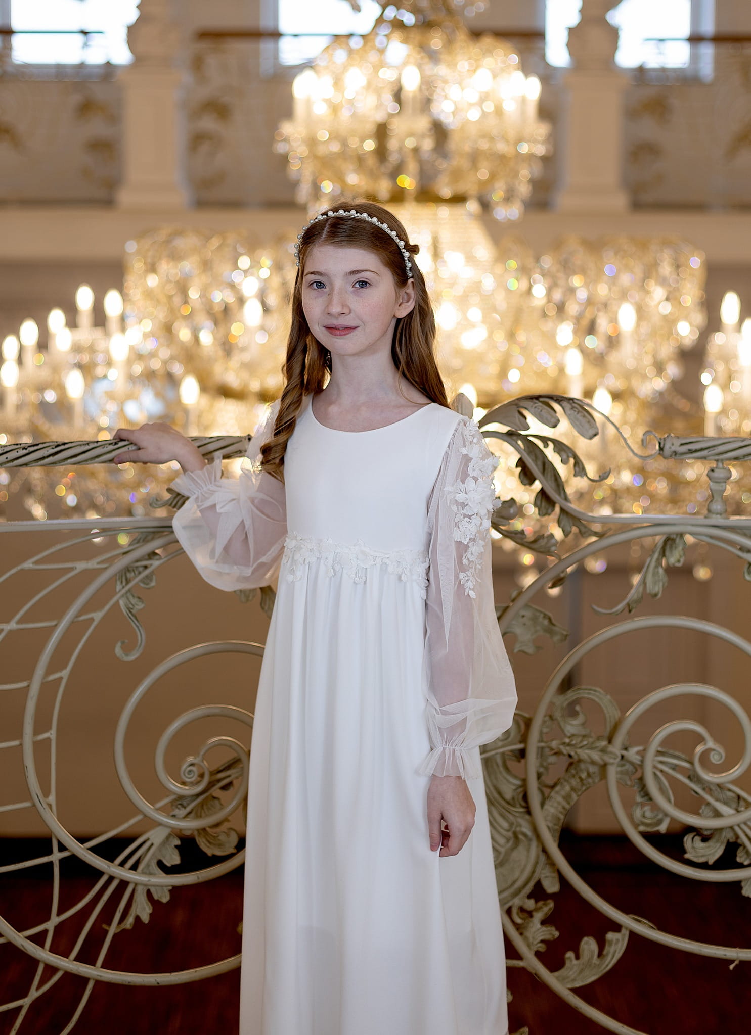 Sukienka komunijna Hania z ozdobnym rękawem biała
